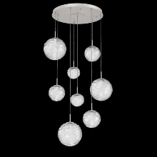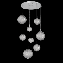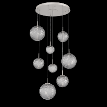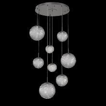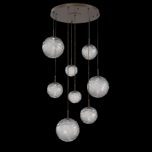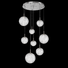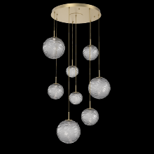 Gaia 8pc Round Multi - Pendant - Gilded Brass - Clear Blown Glass - Cloth Braided Cord - LED - 3000K