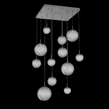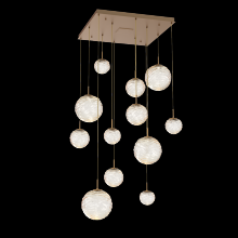 Gaia 12pc Square Multi - Pendant - Gilded Brass - Amber Blown Glass - Cloth Braided Cord - LED - 3000K