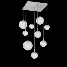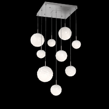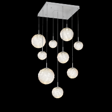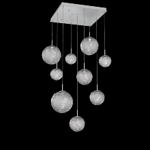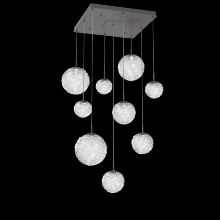 Gaia 9pc Square Multi - Pendant - Gilded Brass - Amber Blown Glass - Cloth Braided Cord - LED - 3000K
