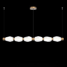 Gem Mandrel 74 - Inch Linear - Gilded Brass - Amber Blown Glass - Stainless Cable - LED - 3000K