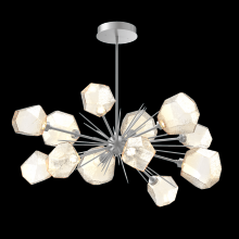 Gem Oval Starburst-0D-Satin Nickel-Blown Glass Gem - Smoke-Threaded Rod Suspension-LED