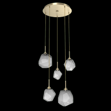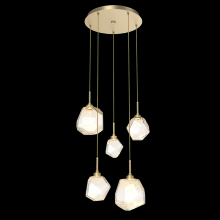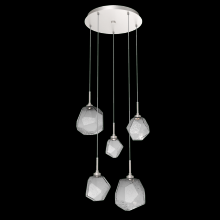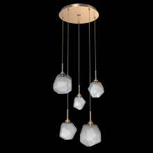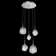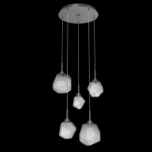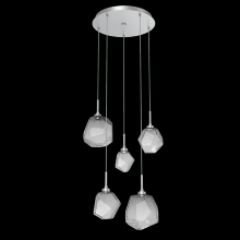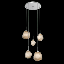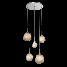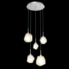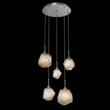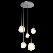 Gem Round Multi - Port - Metallic Beige Silver - Amber Blown Glass - Cloth Braided Cord - LED - 2700K