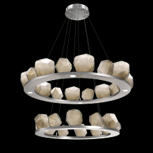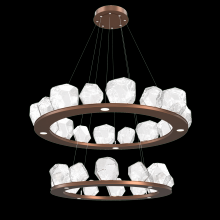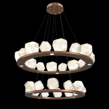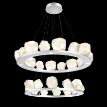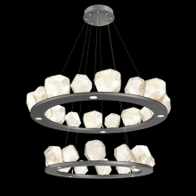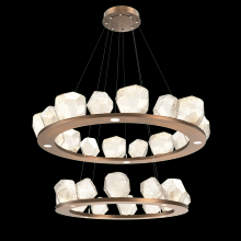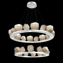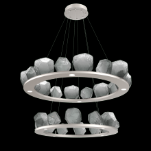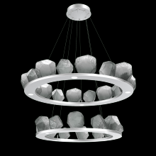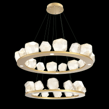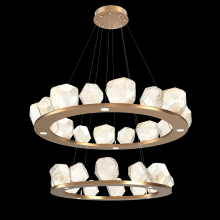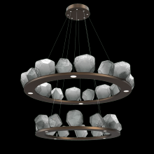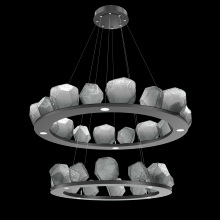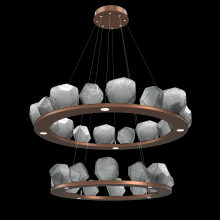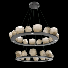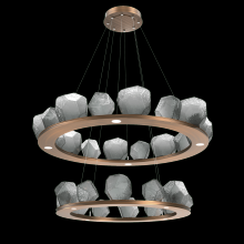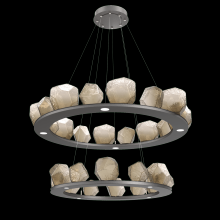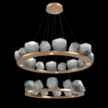 Two Tier Gem Ring Chandelier - 2B - Gilded Brass - Smoke Blown Glass - Stainless Cable - LED - 2700K