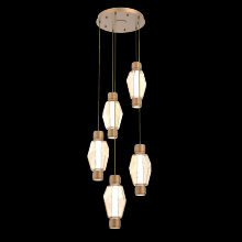 Mandrel Round 5pc Multi-Pendant - Gem-Gilded Brass-Amber Blown Glass-Cloth Braided Cord-LED - 3000K