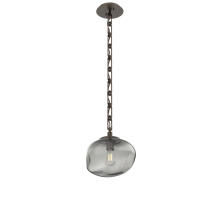 The Nebula Nova Pendant features a softly undulant 10”W oval shade in artisan blown crystal glass with an E26 base that takes one 40W bulb.