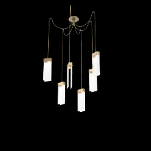Parallel Glass Round 6pc Swag Multi - Pendant - Novel Brass - Bronze Granite - Cloth Braided Cord - LED - 3000K