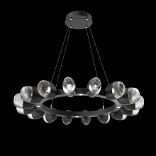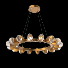 Pebble 36" Ring (16 Small Glass) - Gilded Brass - Pebble Clear - Stainless Cable - LED 2700K