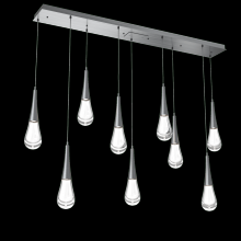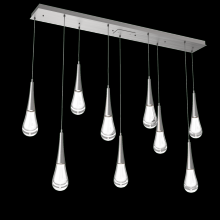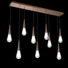 Raindrop Linear 9 PC. - Burnished Bronze - Gilded Brass - Clear Blown Glass - Cloth Braided Cord - LED - 3000K