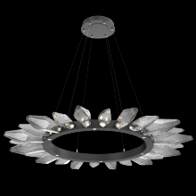 Rock Crystal Radial Ring - 56 - Graphite - Chilled Blown Glass - Bronze - Stainless Cable - LED - 2700K