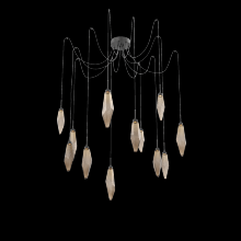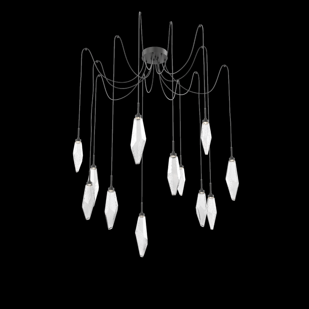 Rock Crystal Round 12pc Swag Multi - Pendant - Matte Black - Chilled Clear - Cloth Braided Cord - LED - 3000K