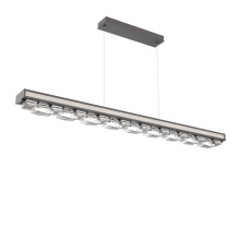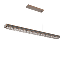 The 2,500-year old art of glass mosaic tiling is brilliantly brought to light in the modern-styled Tessera Linear Chandelier. Choose from five tile motifs in artisan cast crystal glass, two wood-inspired accent motifs, and several finishes. Tessera fixtures are illuminated with 93 CRI integrated LED and are available in 2700K or 3000K color temperature.