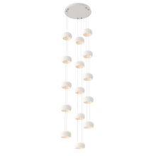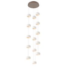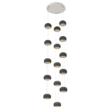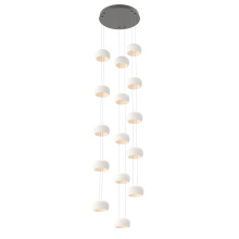 As a stairwell, entry, or living room statement piece, this take on the Torno collection can extend up to 20 feet, with adjustable configurations of 5-, 15-, or 25-ceramic shades that let you tailor each drop for proportion and visual flow. The result is a modern, quietly dramatic installation that transforms vertical space into an architectural moment.