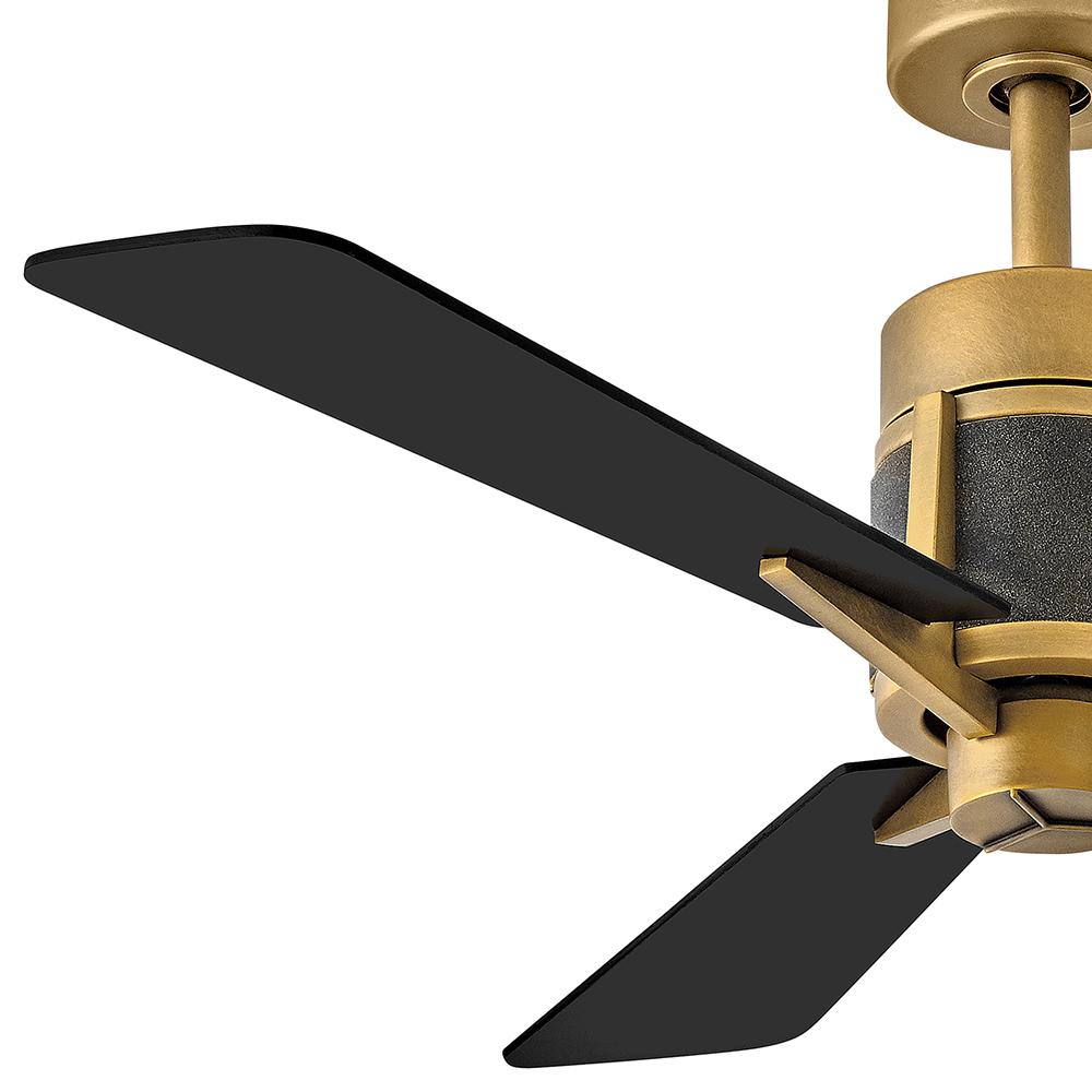 Sophisticated leather accents and a variety of finishes add a touch of rich detail to Atticus's contemporary aesthetic. A versatile, damp-rated design complements both interior spaces and covered outdoor areas. Equipped with a 6-speed DC motor that is WiFi enabled and ready to connect right out of the box. Operated by the HIRO control or WiFi compatible with the Hinkley App.