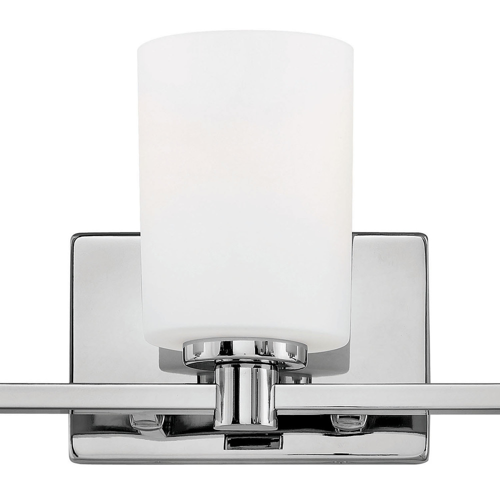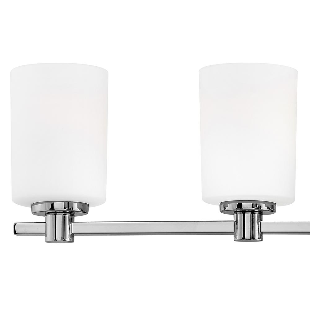 Karlie's clean design is transitional in style and will complement a variety of décor. Featuring precision die-cast cups and cylindrical, etched opal glass, it is available in Brushed Nickel and Chrome.