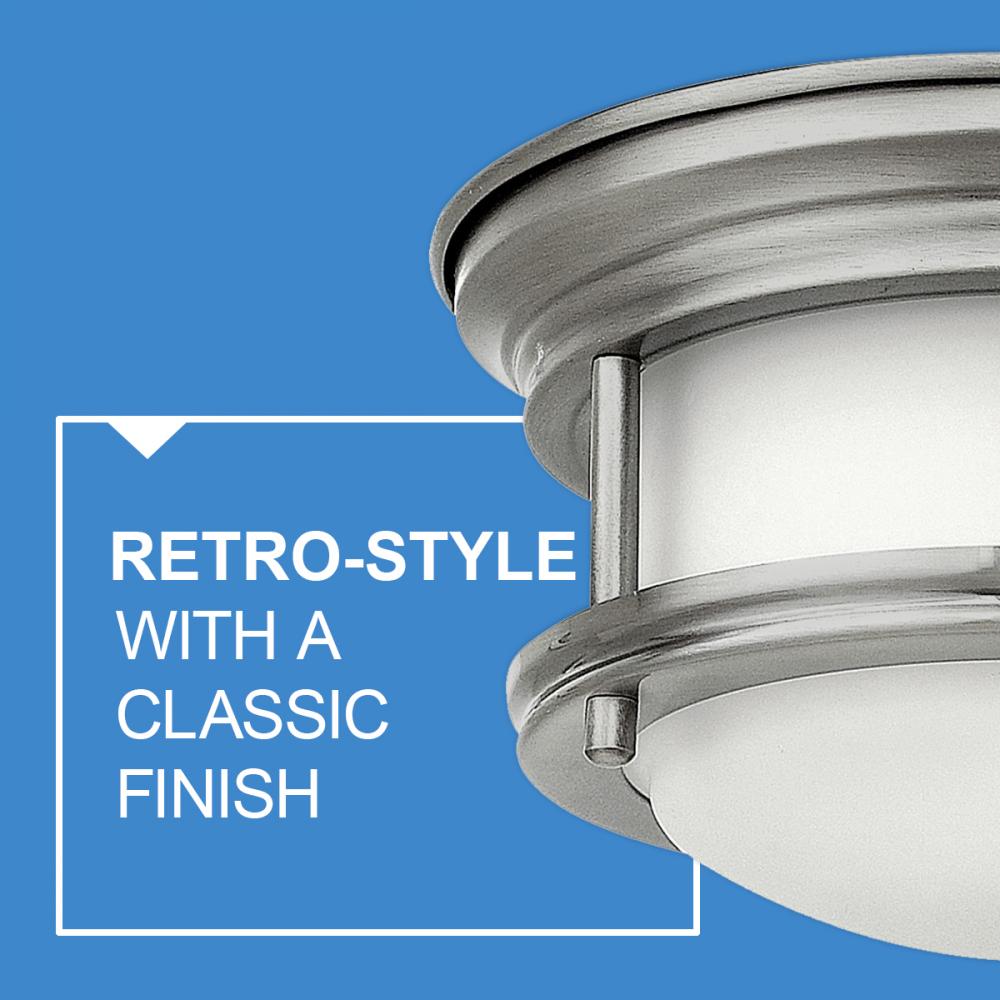 Hadley is a retro-styled collection available in four classic finish options. The etched opal or clear one piece glass shade features a slim design that will complement a variety of décors.