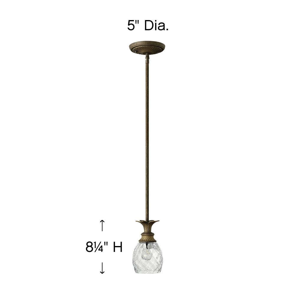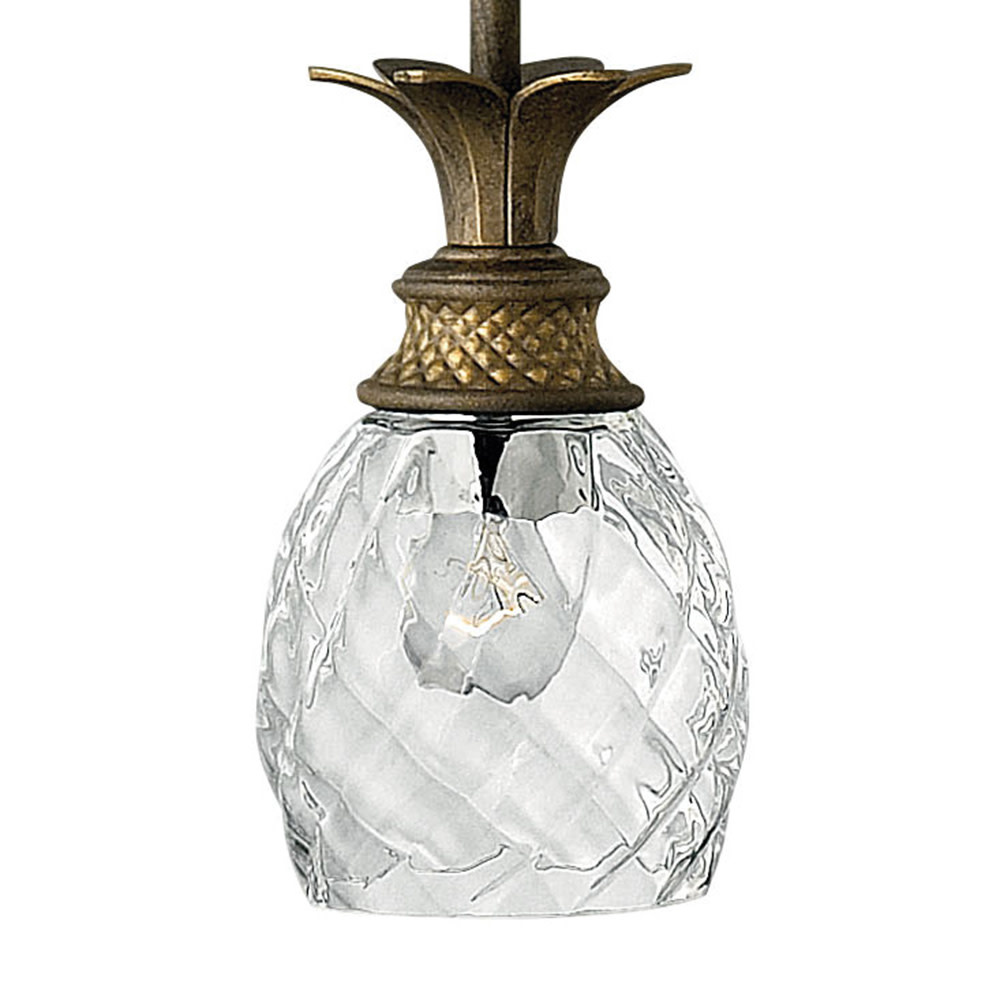 A Hinkley classic, the ornate Plantation collection features exceptional pineapple shaped, clear optic glass that makes a noble statement. The elaborate, decorative cast detailing is accentuated by its lush finish.