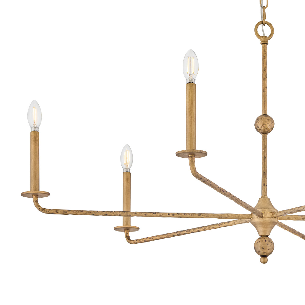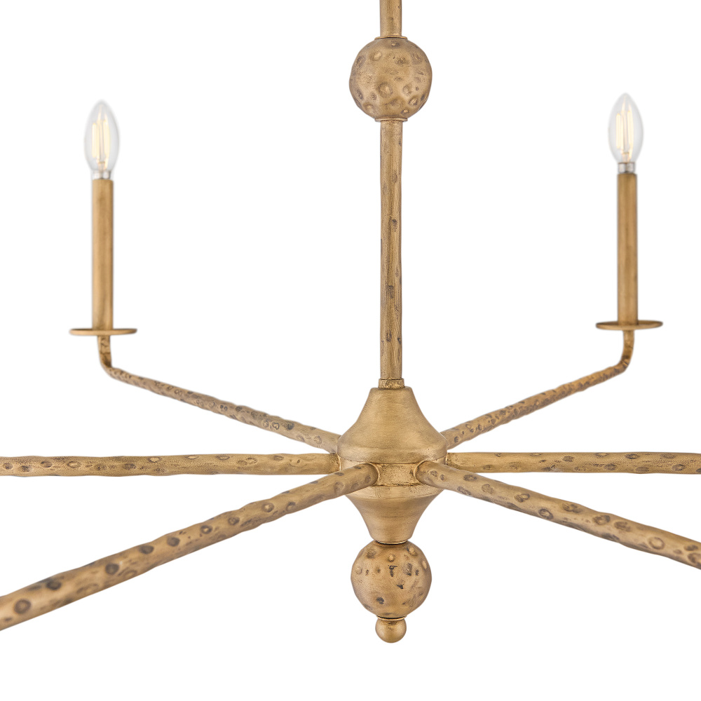 Inspired by traditional old-world chandeliers, Ansel’s hand-forged design features slim, spoked arms decorated with hand-hammered detailing, giving the formal silhouette a more rustic appeal. This centerpiece fixture is ideal for grand foyers, great rooms, or dining spaces, imparting a lake house or cabin feel to your decor.