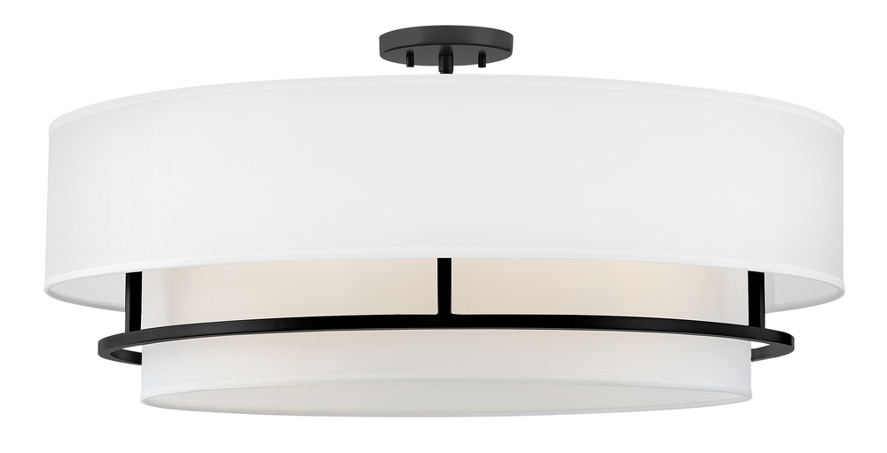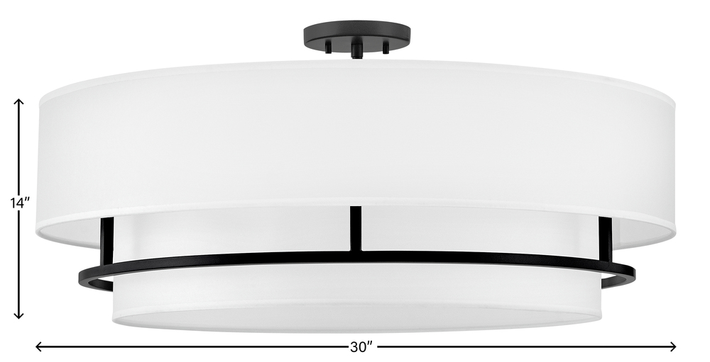Handsome Graham is understated elegance, crafted with unique details making it the ultimate transitional semi-flush mount. Its welded frame is nestled between two off-white shades, in luminous faux parchment with a finished cluster visible from below. Graham is available in multiple finish options.