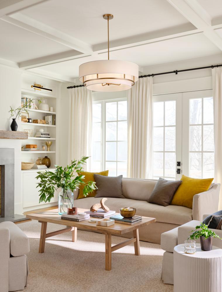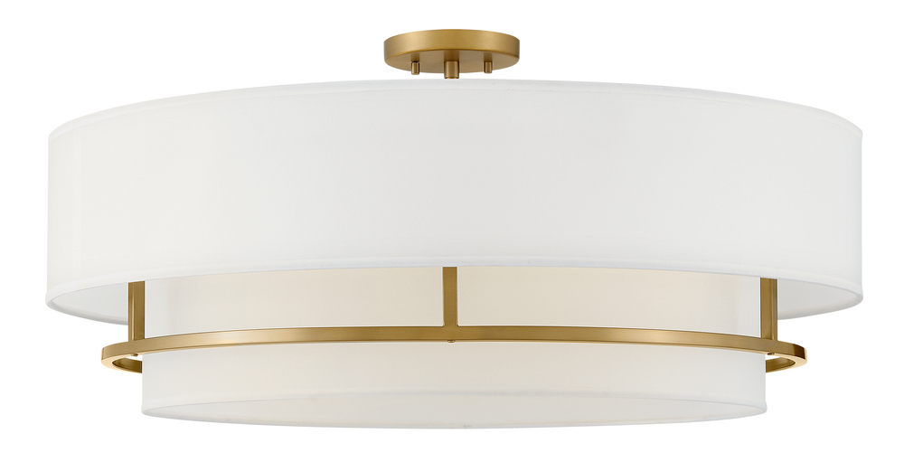 Handsome Graham is understated elegance, crafted with unique details making it the ultimate transitional semi-flush mount. Its welded frame is nestled between two off-white shades, in luminous faux parchment with a finished cluster visible from below. Graham is available in multiple finish options.