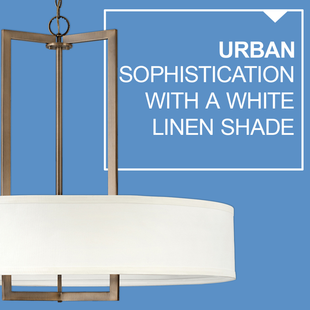 Hampton is a modern transitional design, offering the ultimate in urban sophistication. The minimal, rectangular frame is softened by a contemporary off-white linen drum shade.