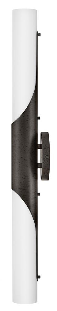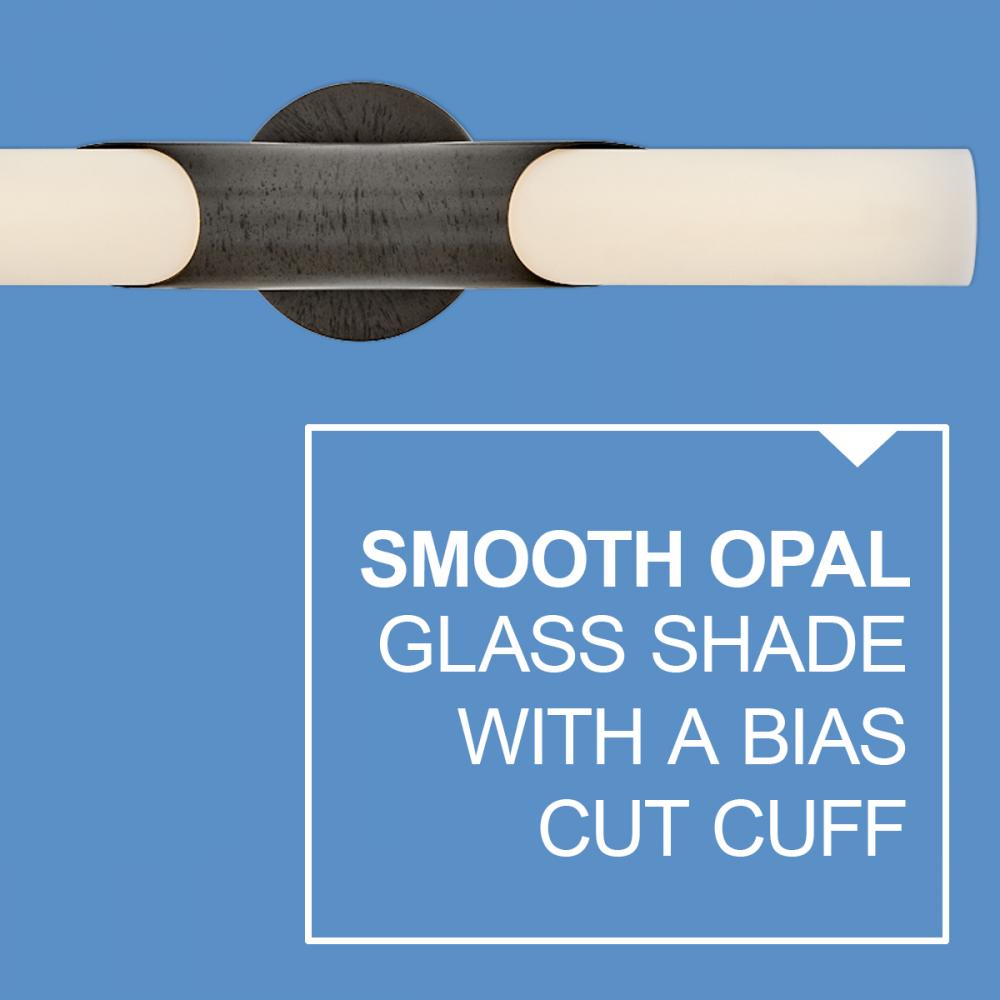 Grace is simply elegant and perfectly named. Featuring a beautifully modern silhouette enhanced by a bias-cut central cuff, this feminine fixture has a timeless aesthetic that complements any décor style. Smooth etched opal glass is paired with a Textured Black Oxide or Textured Heritage Brass finish, providing contrast and subtle detail.