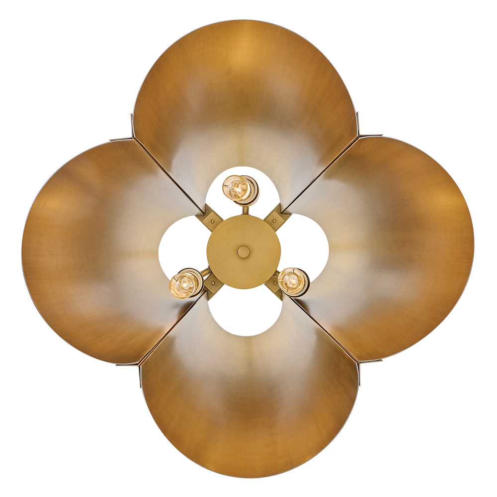 Strong in style and design, Bowman’s makes a transitional statement with a tapered quatrefoil shade accented by decorative knobs along symmetrical vertical supports. Heritage Brass or Slate Bronze finishes complement any living or dining decor with polished metallic tones.