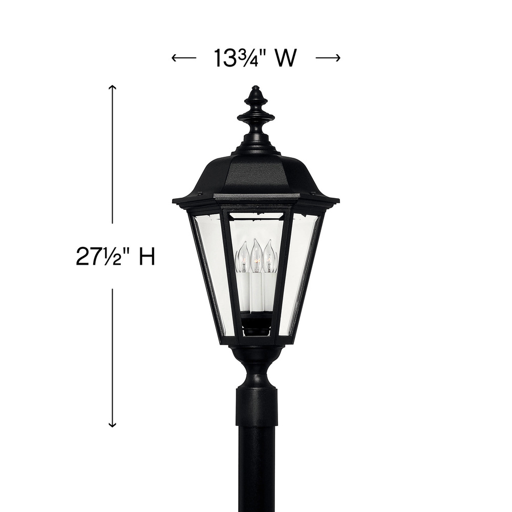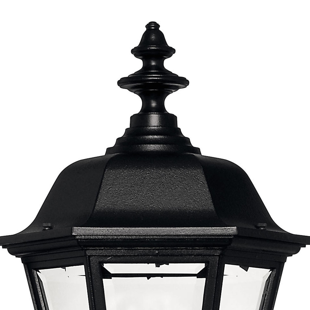 Manor House is a classic lantern design featuring durable cast aluminum, clear beveled glass panels and a bold Black finish. Select-A-Lite options come standard with both candelabra and medium based sockets.