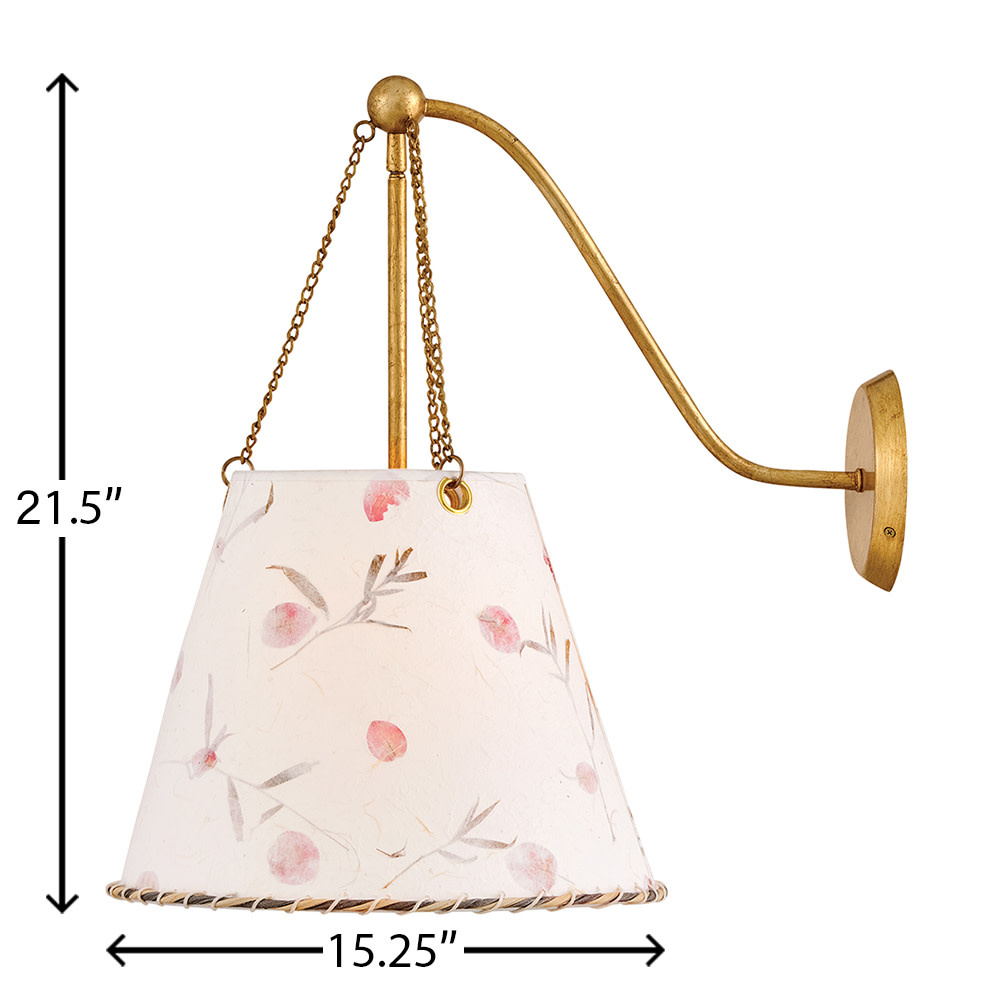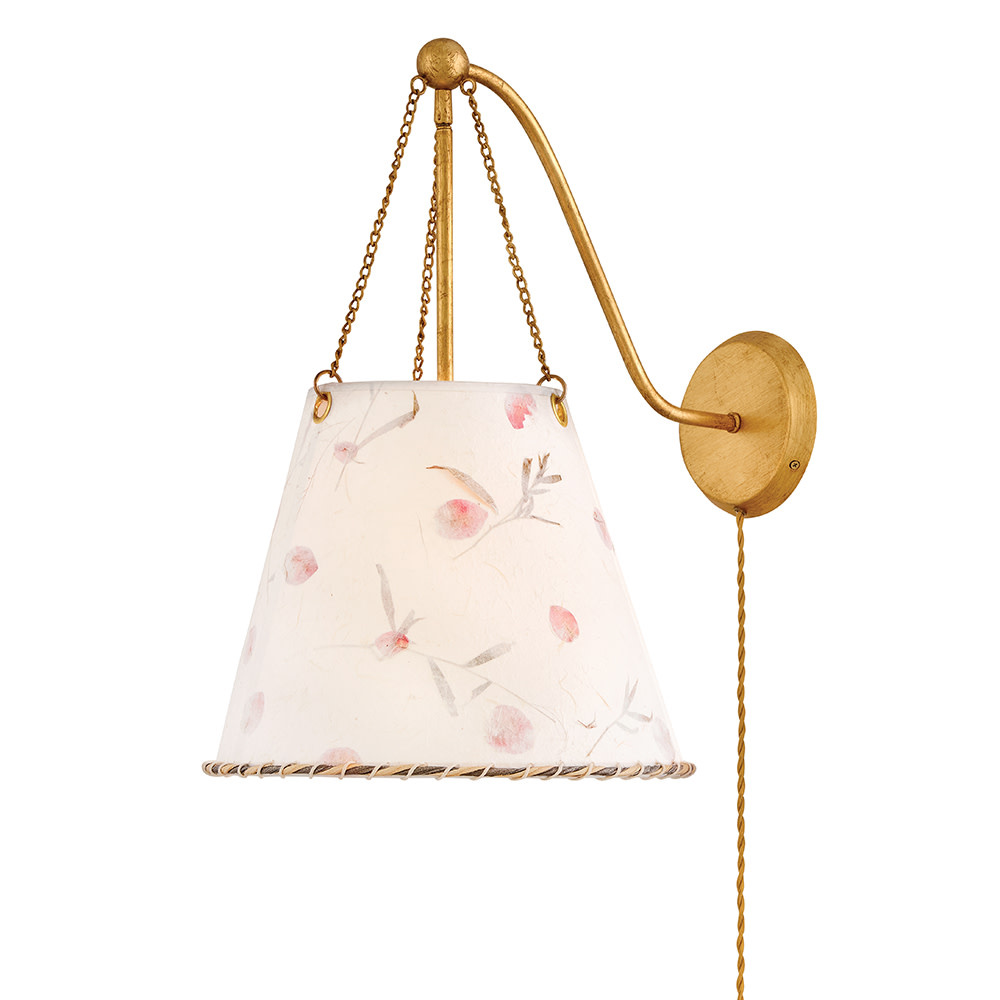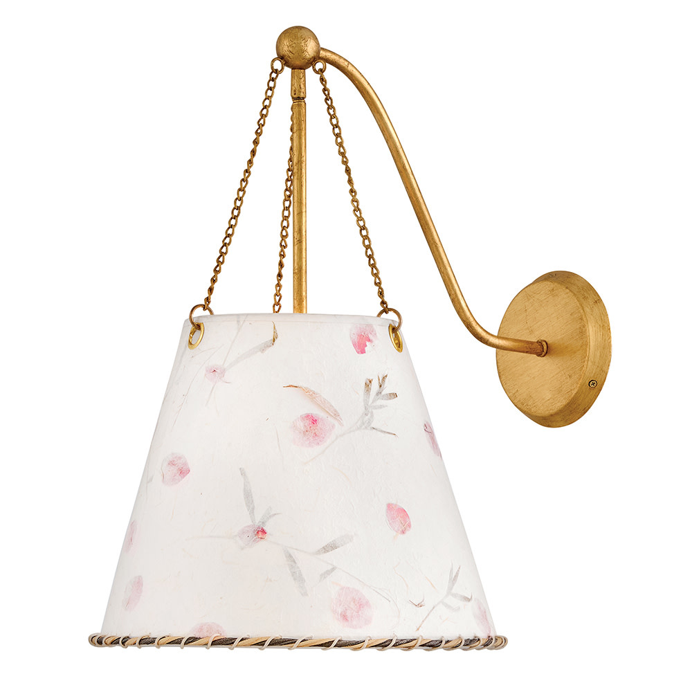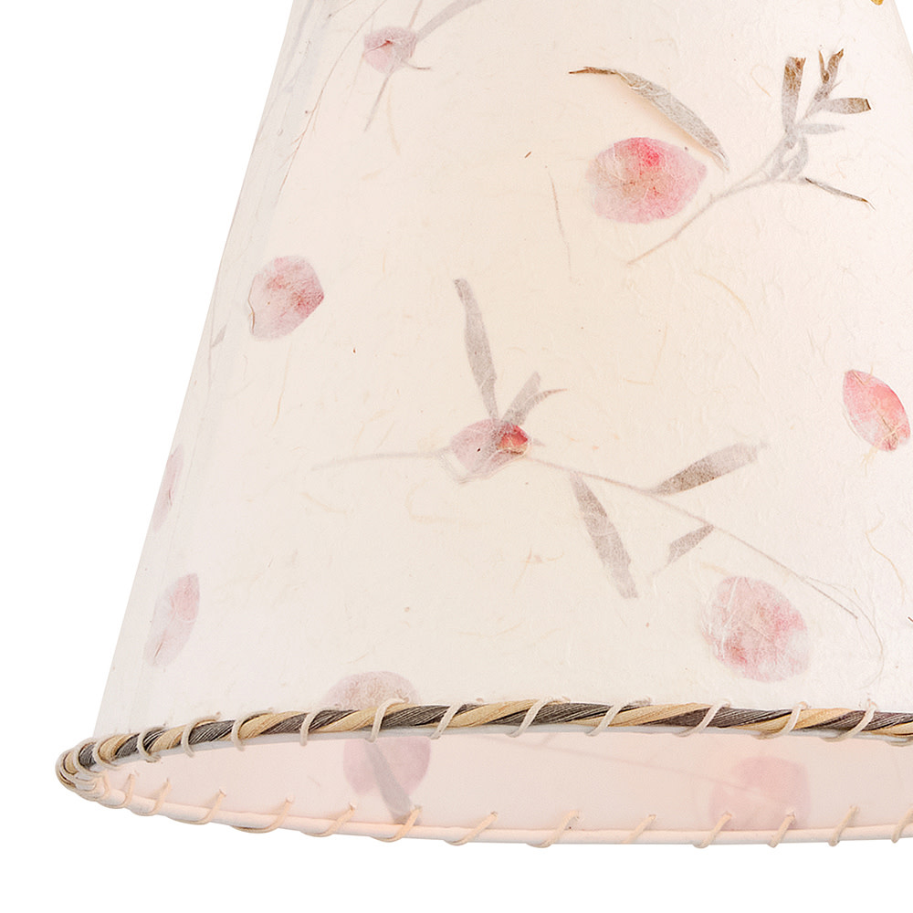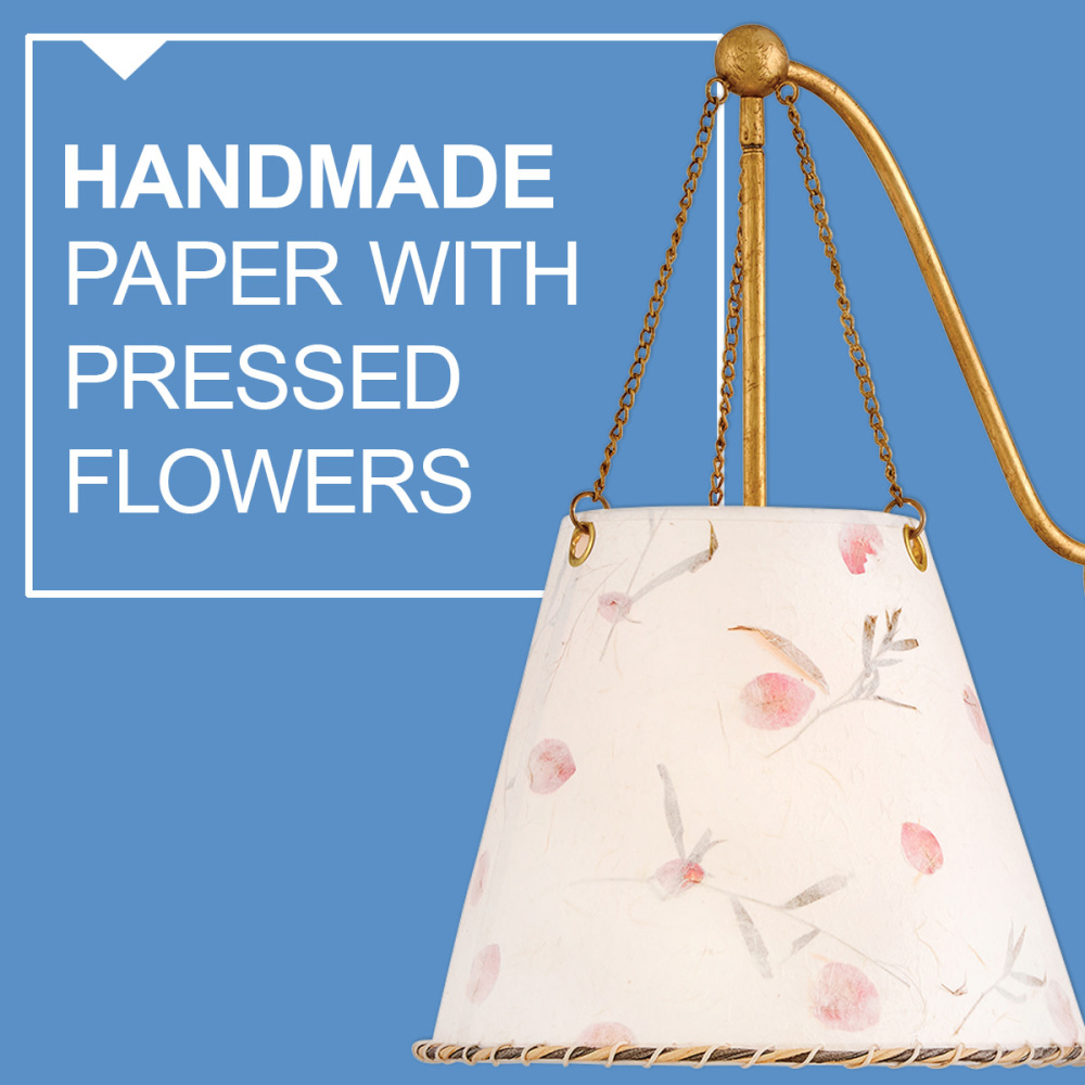 Artisan-crafted from handmade paper pressed with real flowers, Primrose’s delightful shade with twisted rope detailing brings truly unique beauty and cozy ambiance to your space. Its elegant conical silhouette is suspended gracefully from delicate chains, enhanced by a warm Distressed Brass finish.