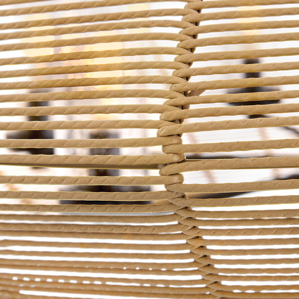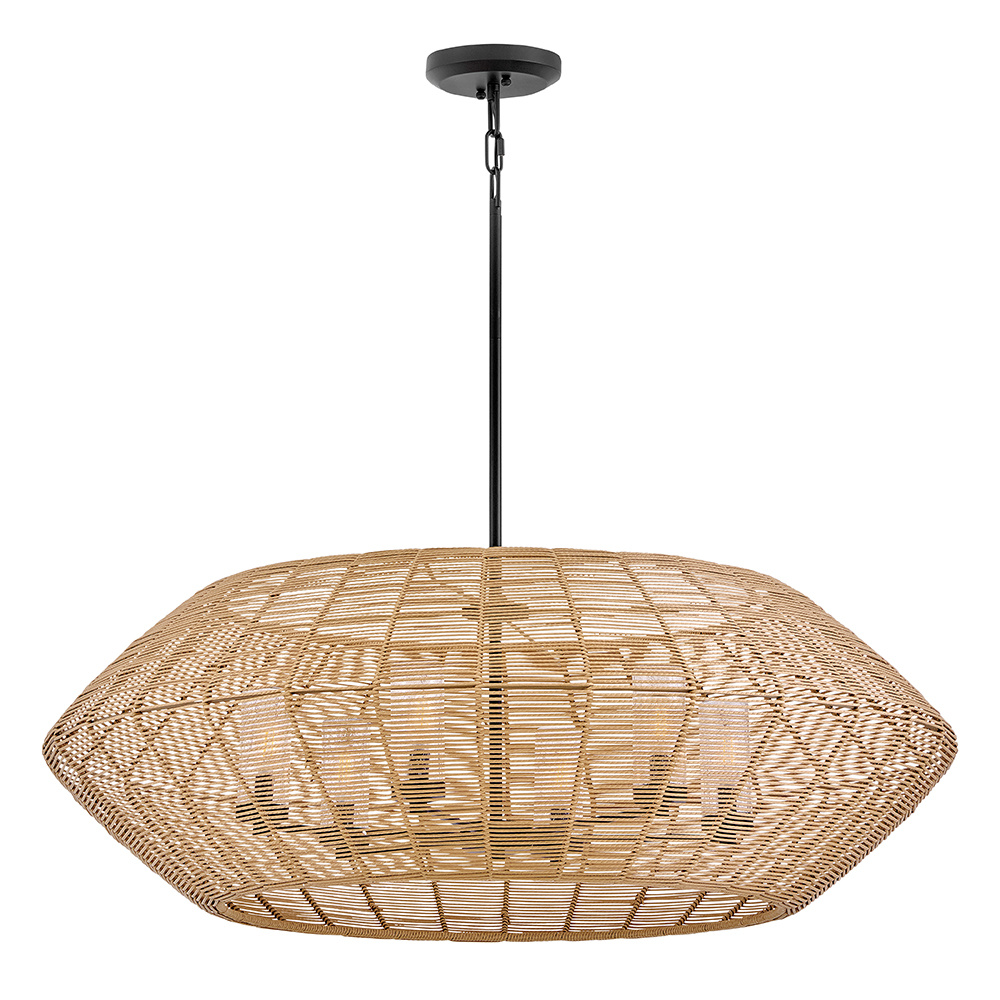 Luca's coastal vibe is permeated with a slightly exotic edge. The bold silhouette showcases a robust, weather-resistant, woven drum shade and candelabra lamps enclosed in clear, seedy glass for plenty of functional light. Offered in a variety of finish options. Luca is part of the Lisa McDennon Collection.