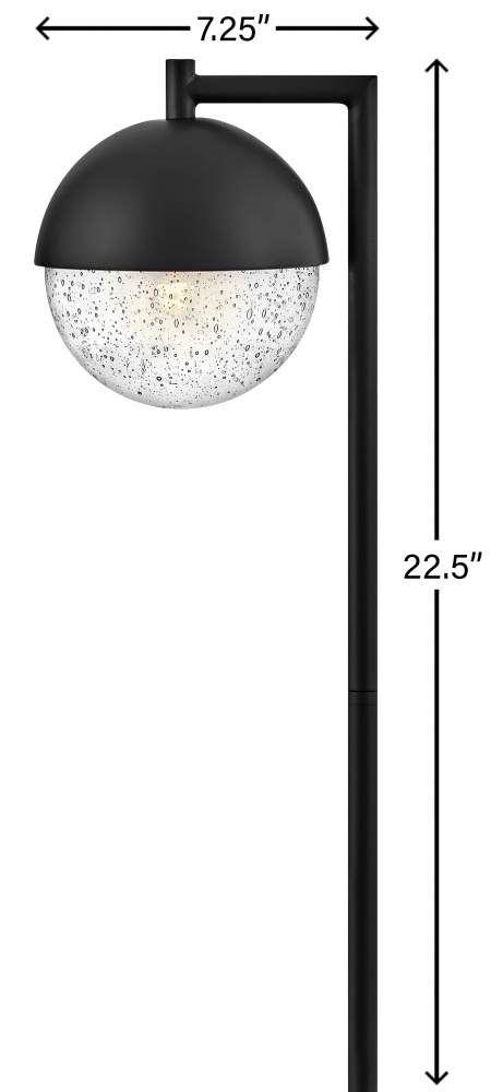 Featuring a 360 degree beam spread for maximum illumination from the bottom of the half aluminum, half clear seedy glass globe, the Revolve path light adds an effortless flair to outdoor living spaces and pathways. The orb-shaped fixture is suspended from a slender, 90 degree post, and in a Satin Black or Bronze finish, creates sophisticated curb appeal while adding safety and security to your home. Includes a long-lasting LED bulb and can easily be combined with additional low voltage path lights.