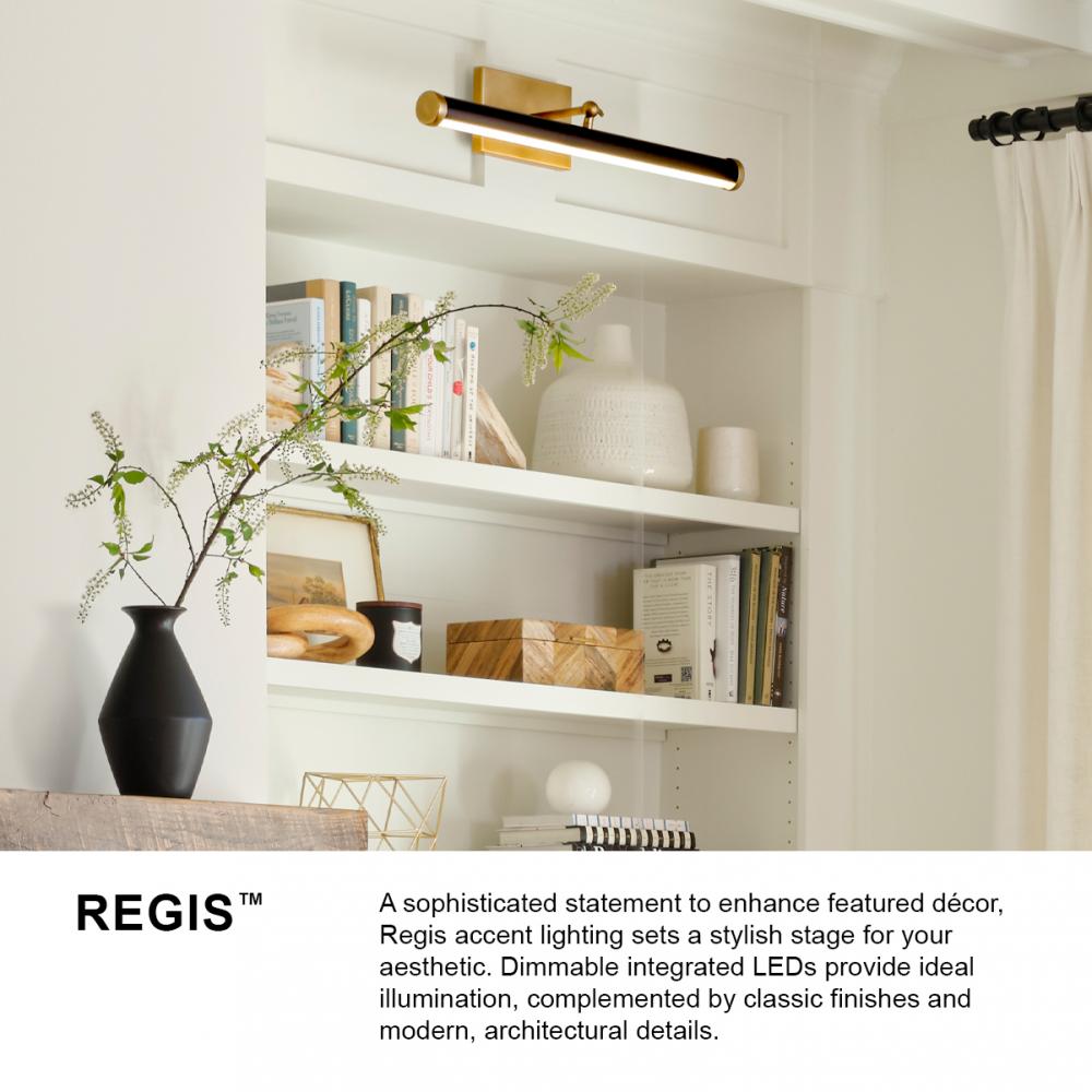 A sophisticated statement to enhance featured décor, Regis accent lighting sets a stylish stage for your aesthetic. Dimmable integrated LEDs provide ideal illumination, complemented by classic finishes and modern, architectural details.
