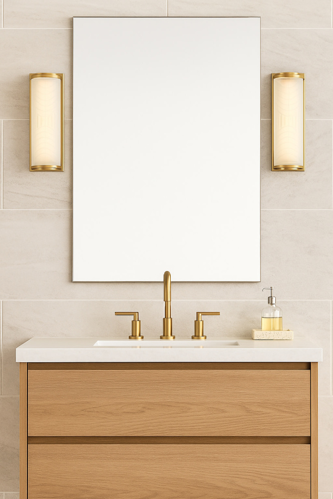 Devon is the perfect balance of style and function. Geometric subtleties paired with the cased opal glass blend transitional and modern elements to make a sleek and unexpected statement. Stepped endcaps on both sides match the square backplate for a dash of industrial appeal. Devon is part of the Lisa McDennon Collection.