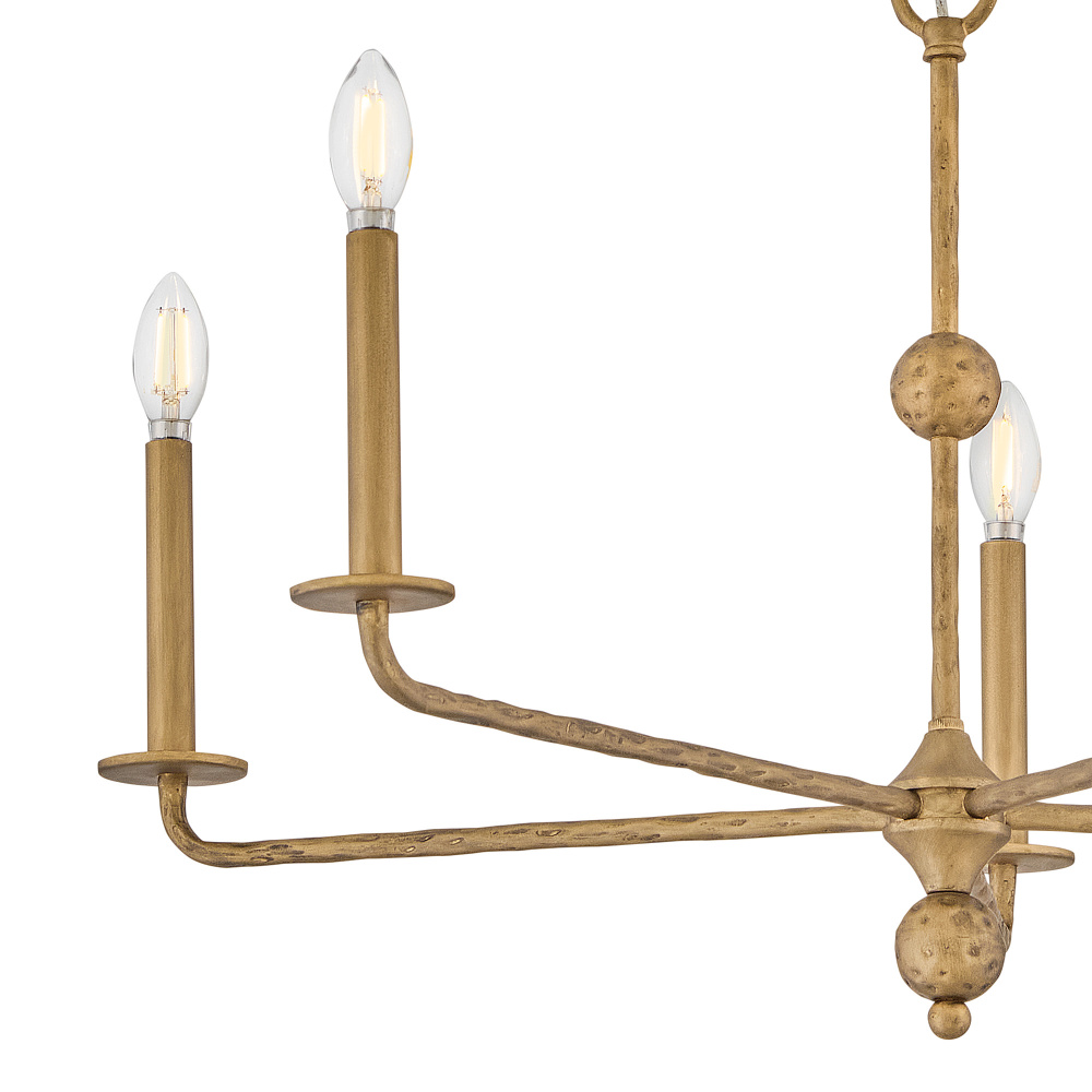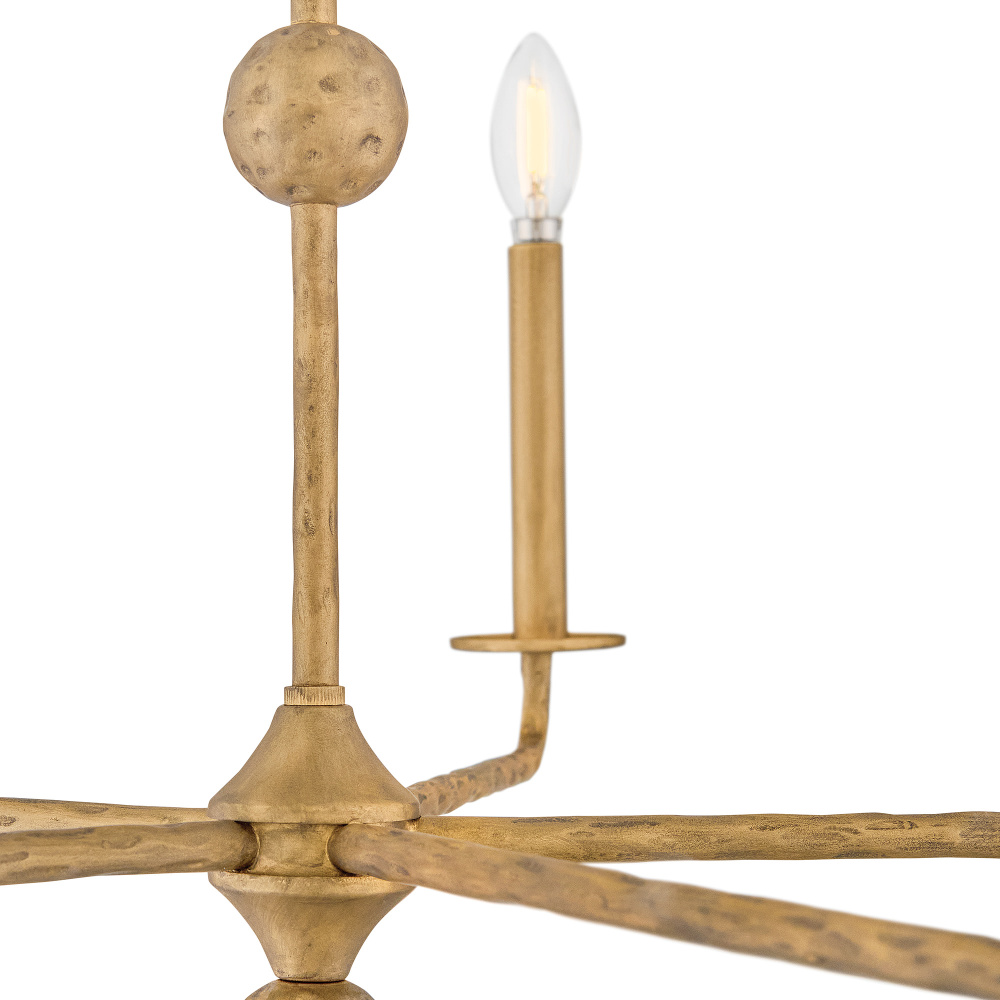 Inspired by traditional old-world chandeliers, Ansel’s hand-forged design features slim, spoked arms decorated with hand-hammered detailing, giving the formal silhouette a more rustic appeal. This centerpiece fixture is ideal for grand foyers, great rooms, or dining spaces, imparting a lake house or cabin feel to your decor.