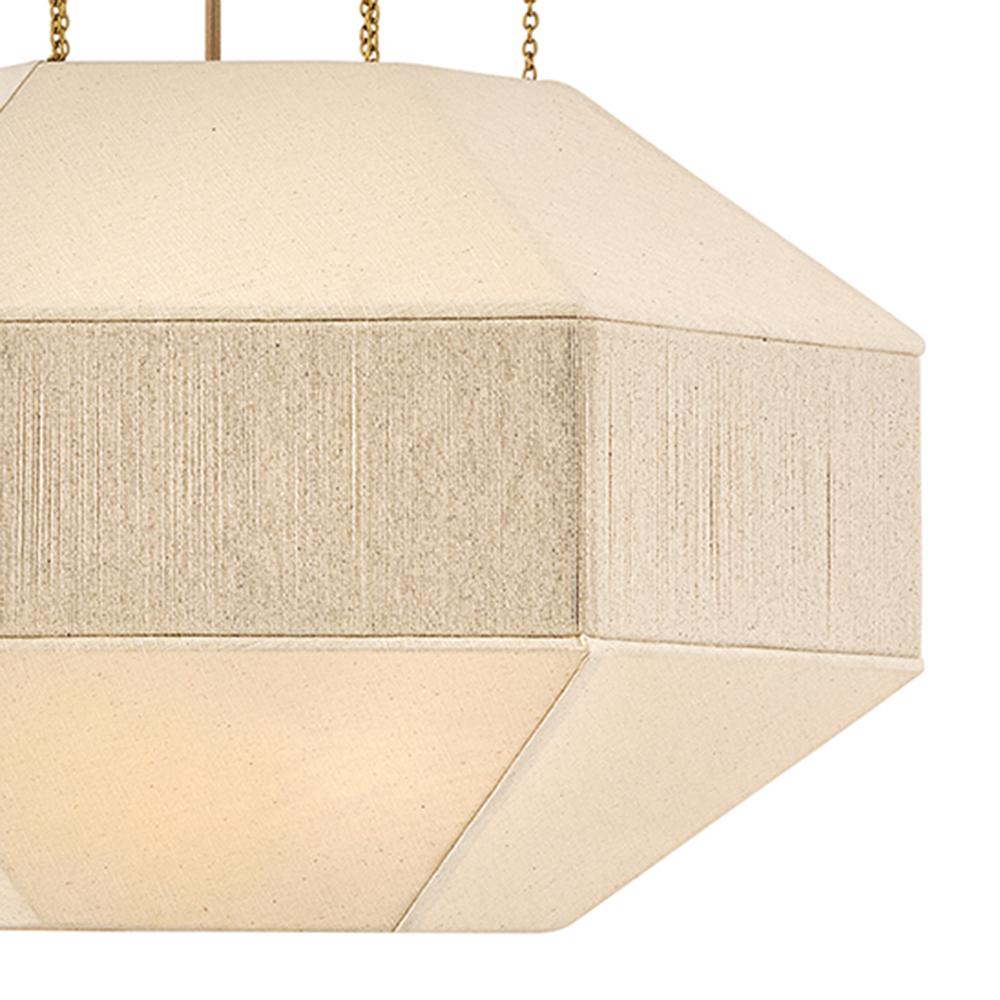 Elegant yet edgy, Lyla’s geometric Oatmeal Linen shade with a textured, wrapped middle band is suspended from refined Lacquered Brass micro-chains – inspired by delicate jewelry designs. A Lacquered Brass canopy and dimmable lamping add subtle warmth and a sophisticated atmosphere to the surrounding space.