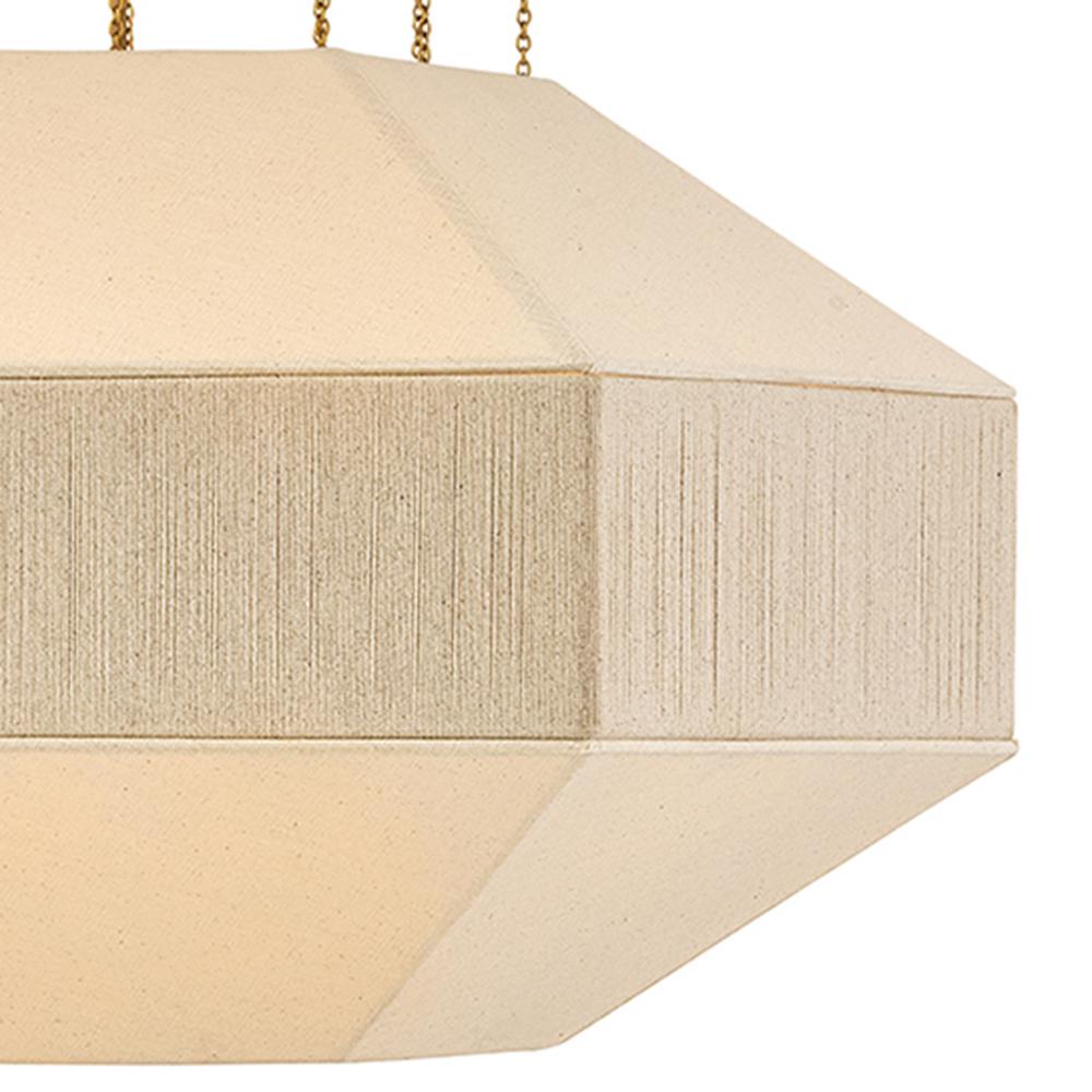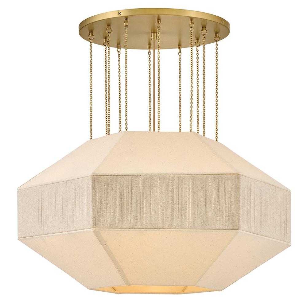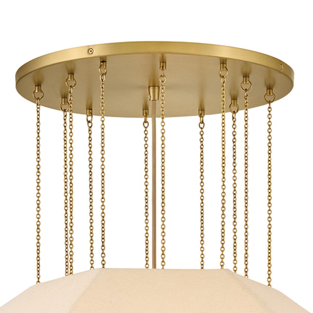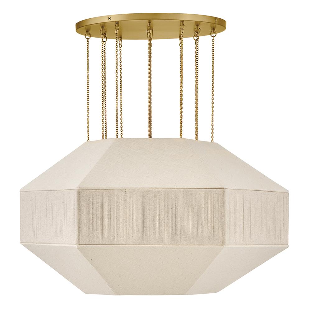 Elegant yet edgy, Lyla’s geometric Oatmeal Linen shade with a textured, wrapped middle band is suspended from refined Lacquered Brass micro-chains – inspired by delicate jewelry designs. A Lacquered Brass canopy and dimmable lamping add subtle warmth and a sophisticated atmosphere to the surrounding space.