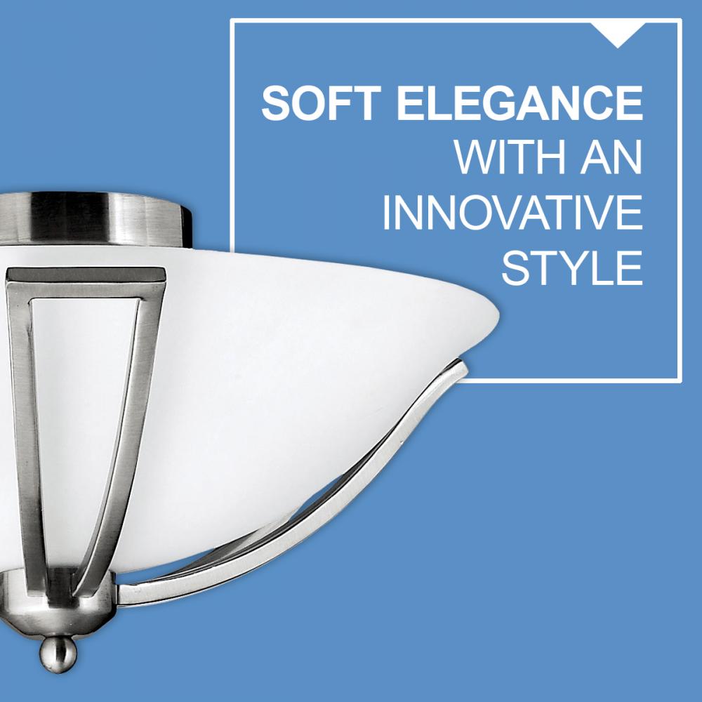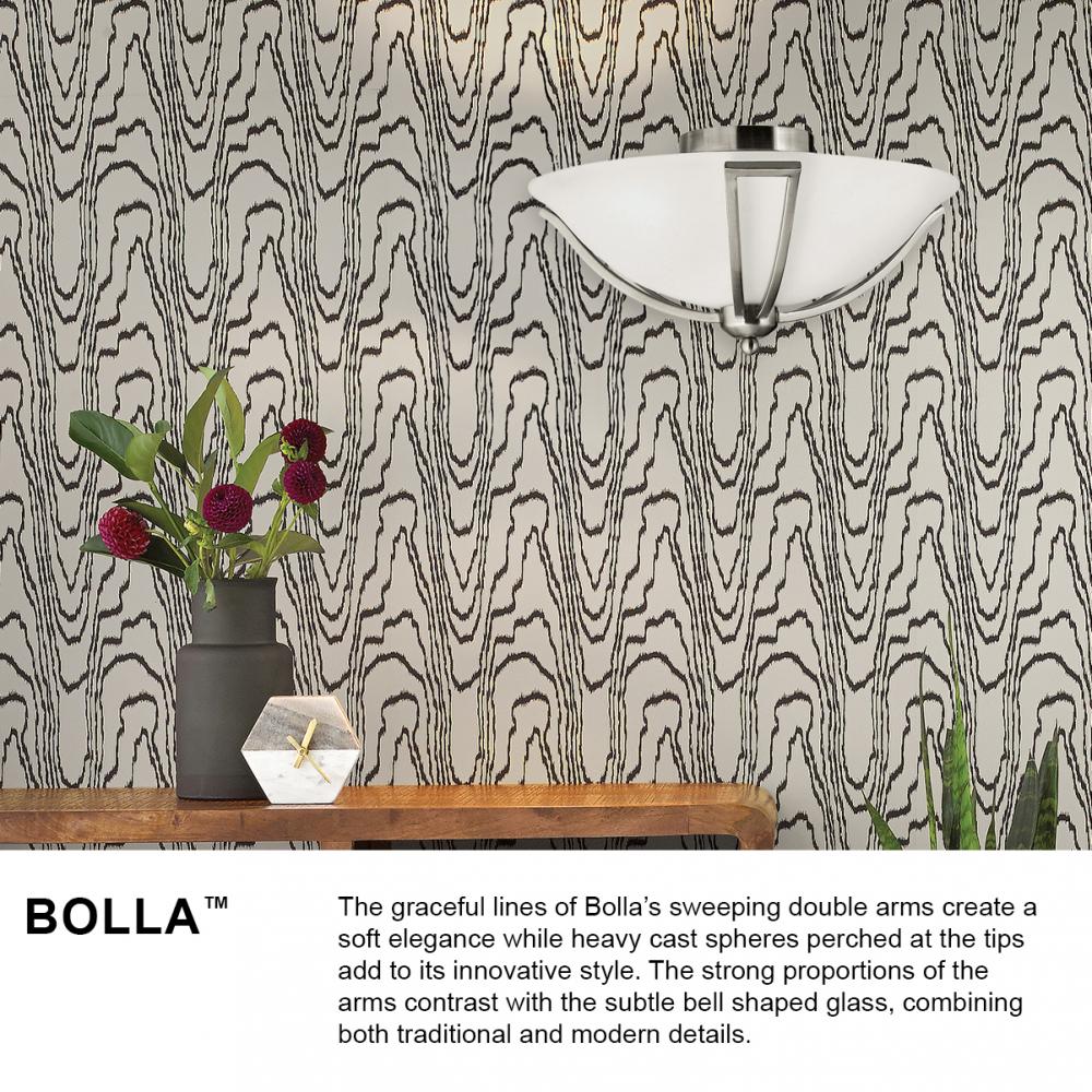 The graceful lines of Bolla create a soft elegance, while heavy cast ball transition details add to its innovative style. The strong proportions of the design contrast with the subtle bell shaped glass, combining both traditional and modern details.