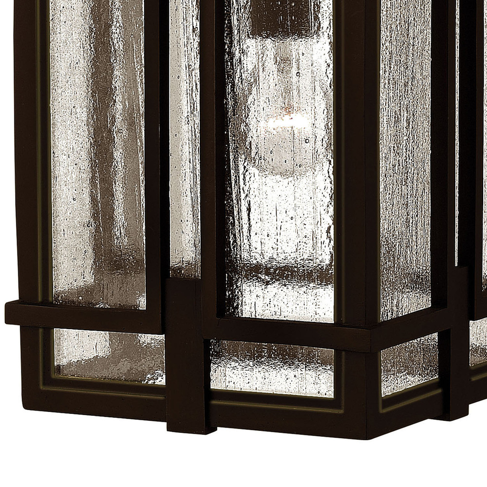 Tucker is study in symmetry with clean geometric lines and proportions reinforced throughout its cast aluminum construction. The sturdy Museum Black or Oil Rubbed Bronze finish and clear seedy glass inspire a rustic lodge aesthetic.