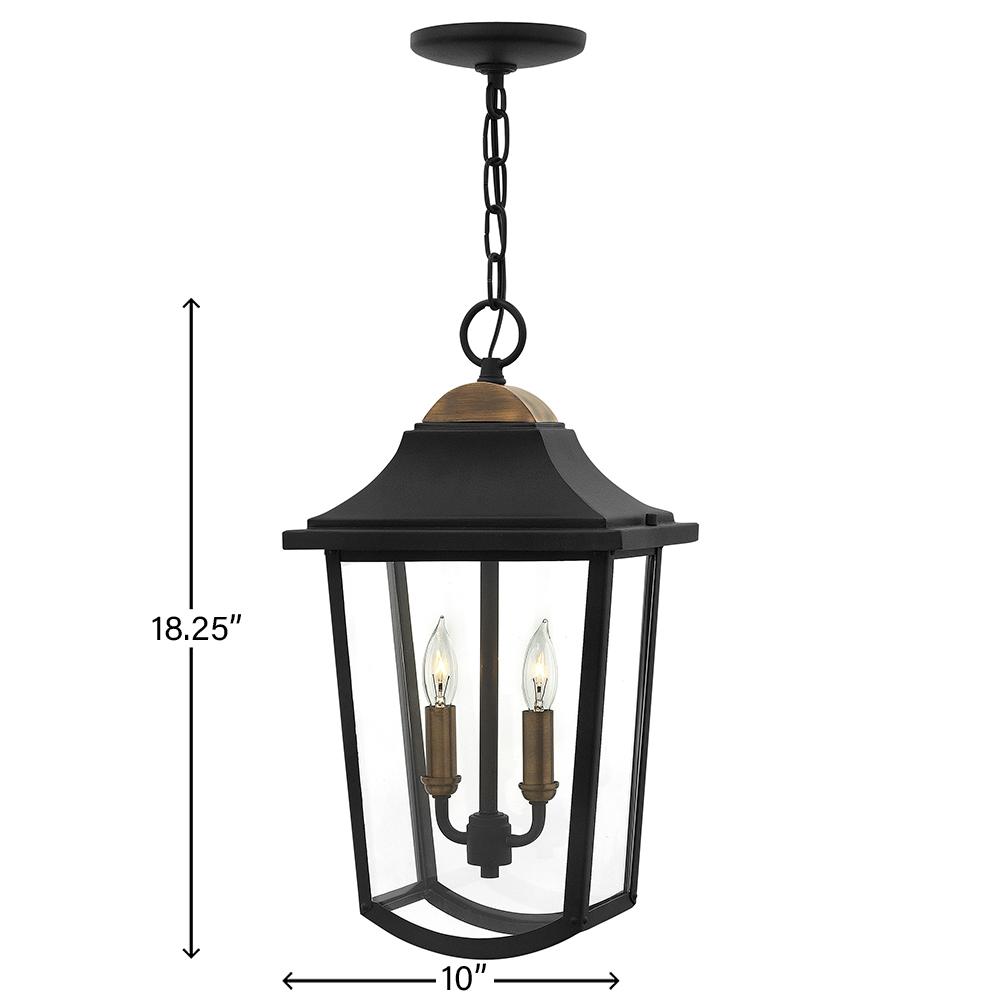 Burton’s classic cast aluminum construction in a robust Black finish is complemented by elegant touches. The distressed copper accents on the backplate, roof and socket cover paired with clear beveled glass complements the traditional styling.