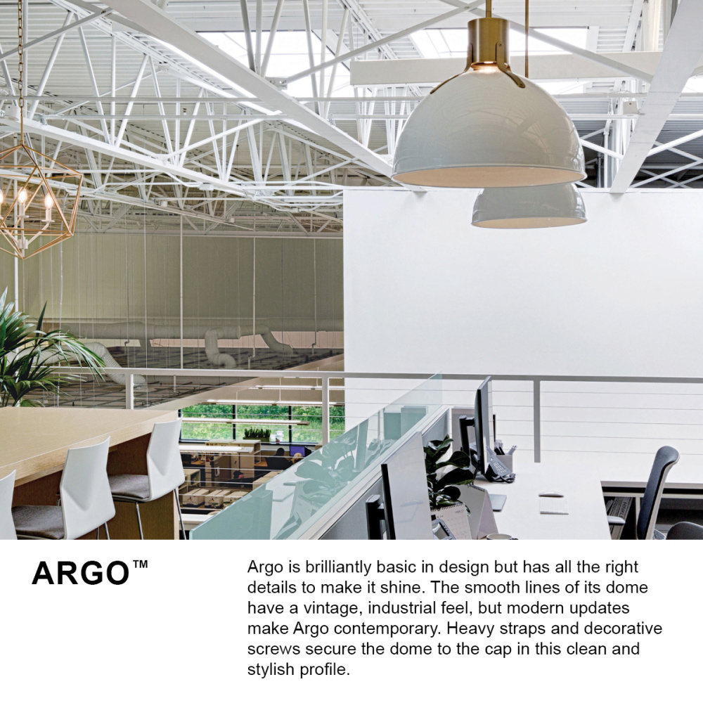 Argo is brilliantly basic in design but has all the right details to make it shine. The smooth lines of its dome have a vintage, industrial feel, but modern updates make Argo contemporary. Heavy straps and decorative screws secure the dome to the cap in this clean and stylish profile.