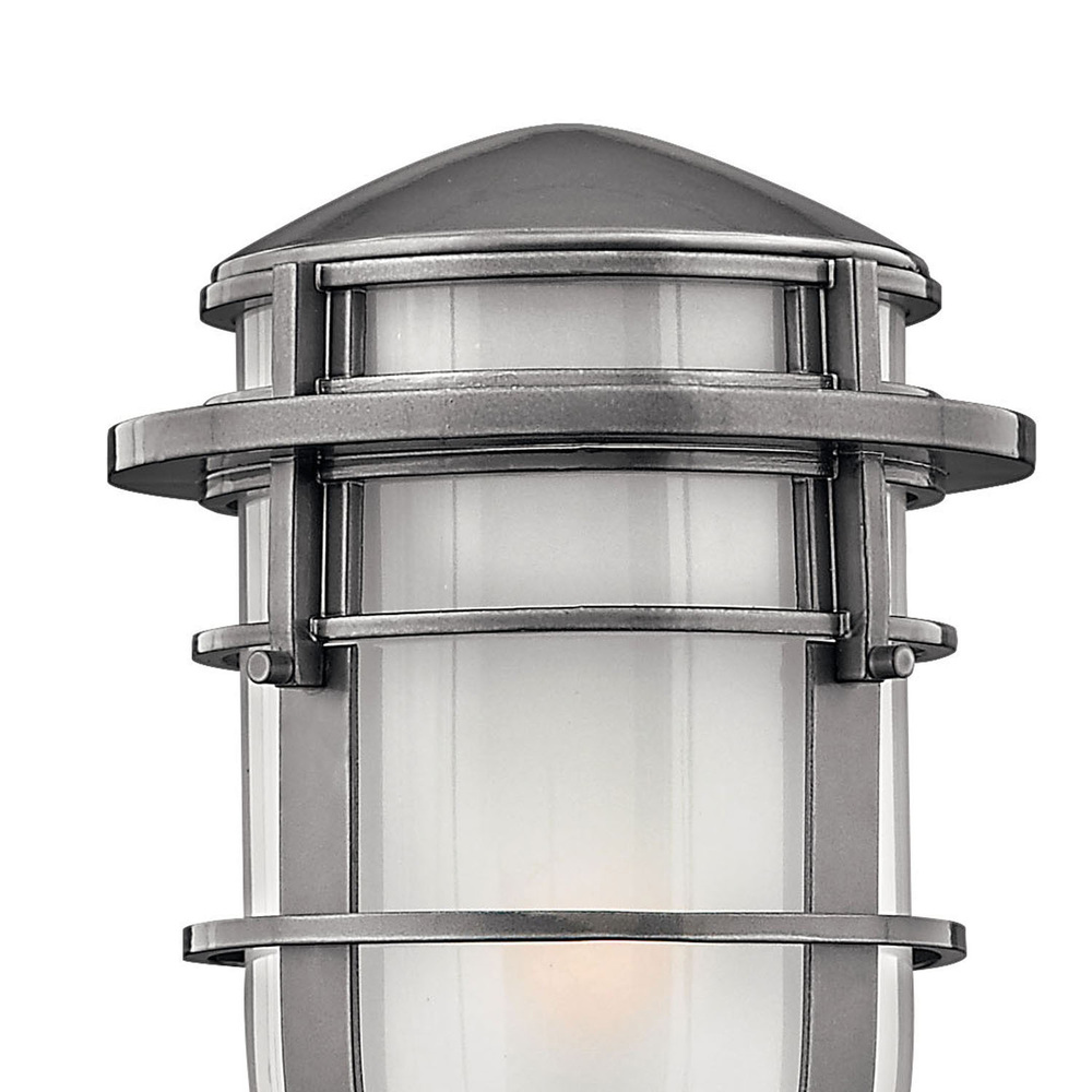 Reef's contemporary nautical shape features a sleek capsule of inside etched glass captured by bold rings of cast aluminum.