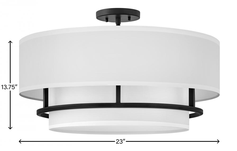 Handsome Graham is understated elegance, crafted with unique details making it the ultimate transitional semi-flush mount. Its welded frame is nestled between two off-white shades, in luminous faux parchment with a finished cluster visible from below. Graham is available in multiple finish options.