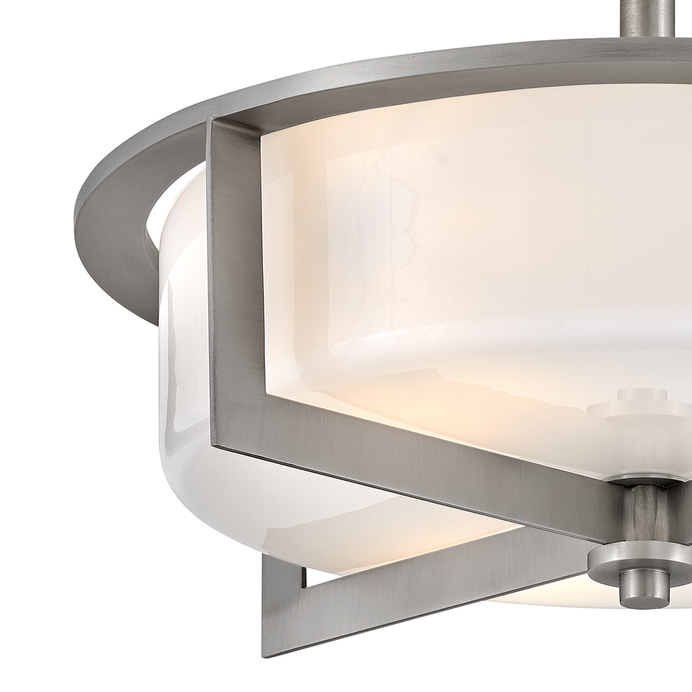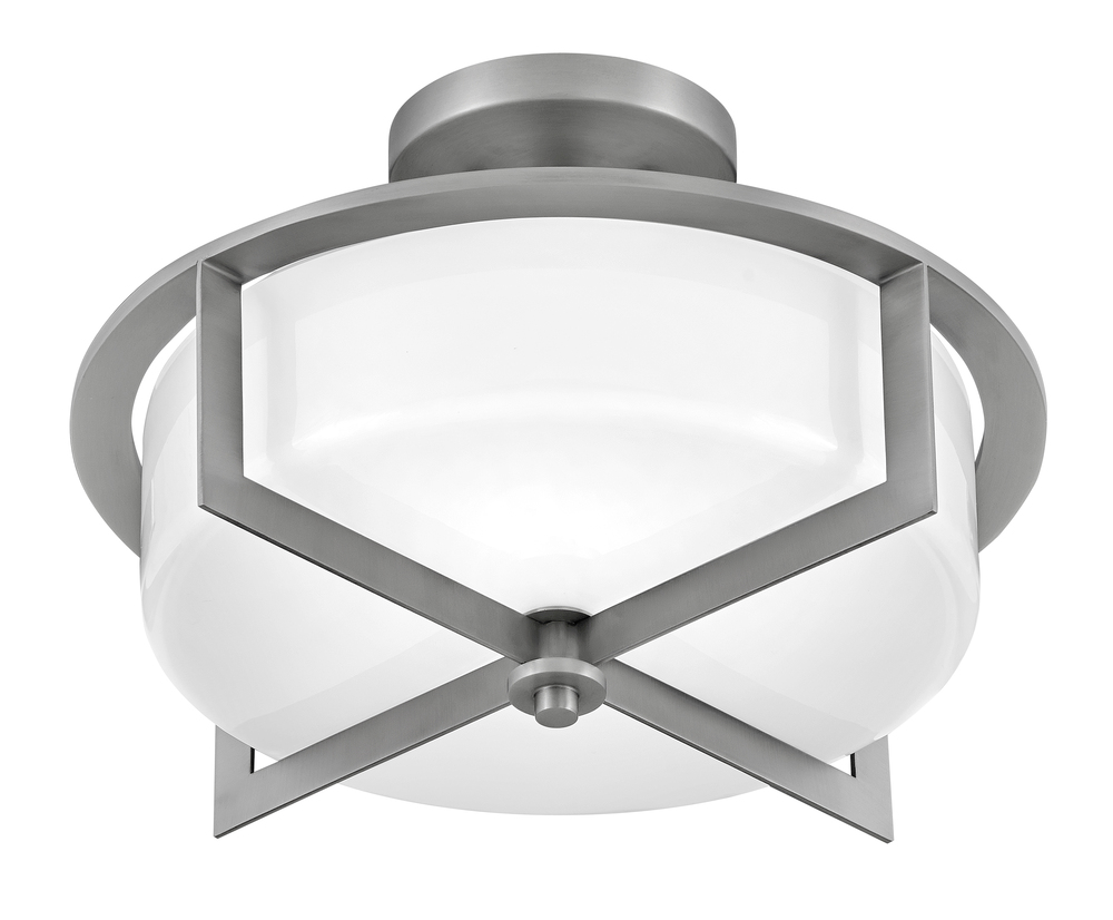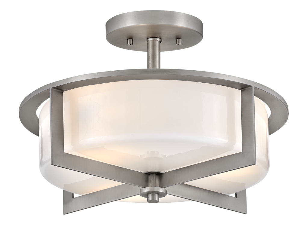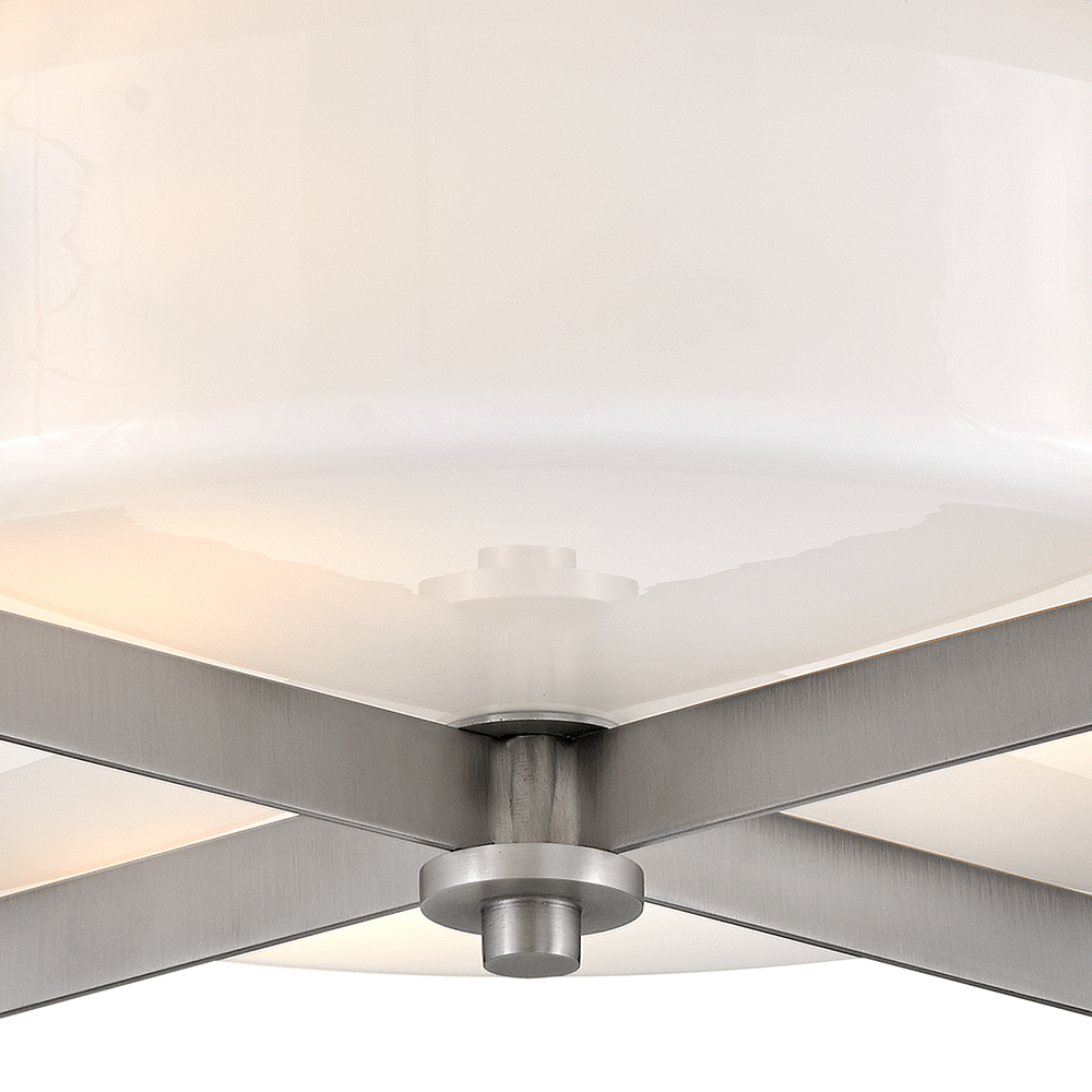 A versatile semi-flush mount collection, Baxley features a prominent crossbar frame that complements various design styles. The cased opal glass adds a striking shine against multiple finish options.