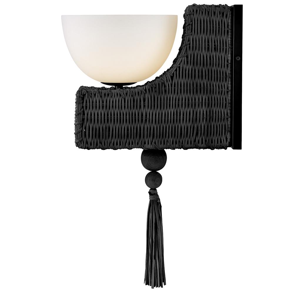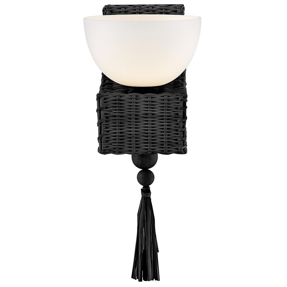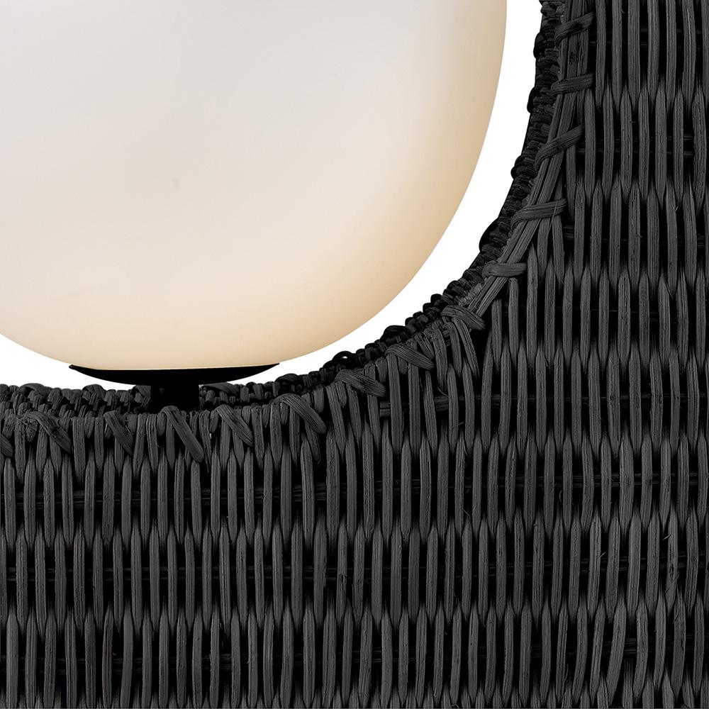 Named after a beach in Laguna, California, marked by a single, large palm leaf umbrella in the sand – Thalia’s distinctive, whimsical woven design evokes the relaxed, carefree spirit of coastal living. Natural raffia is complemented by a shallow opal glass bowl, and a playful tassel adds a fun bohemian touch that can be removed for a more streamlined look.