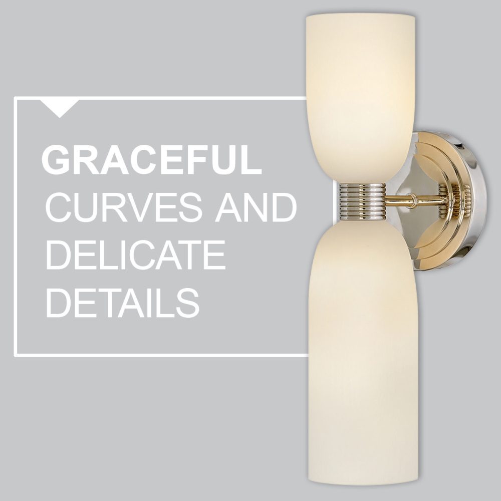 Graceful curves and delicate details define Tallulah. The smooth etched opal glass adds a touch of softness to balance ribbed metal details. Hardware featuring our Lacquered Brass or Polished Nickel finish creates a nuanced retro look that makes Tallulah the perfect addition to any décor.