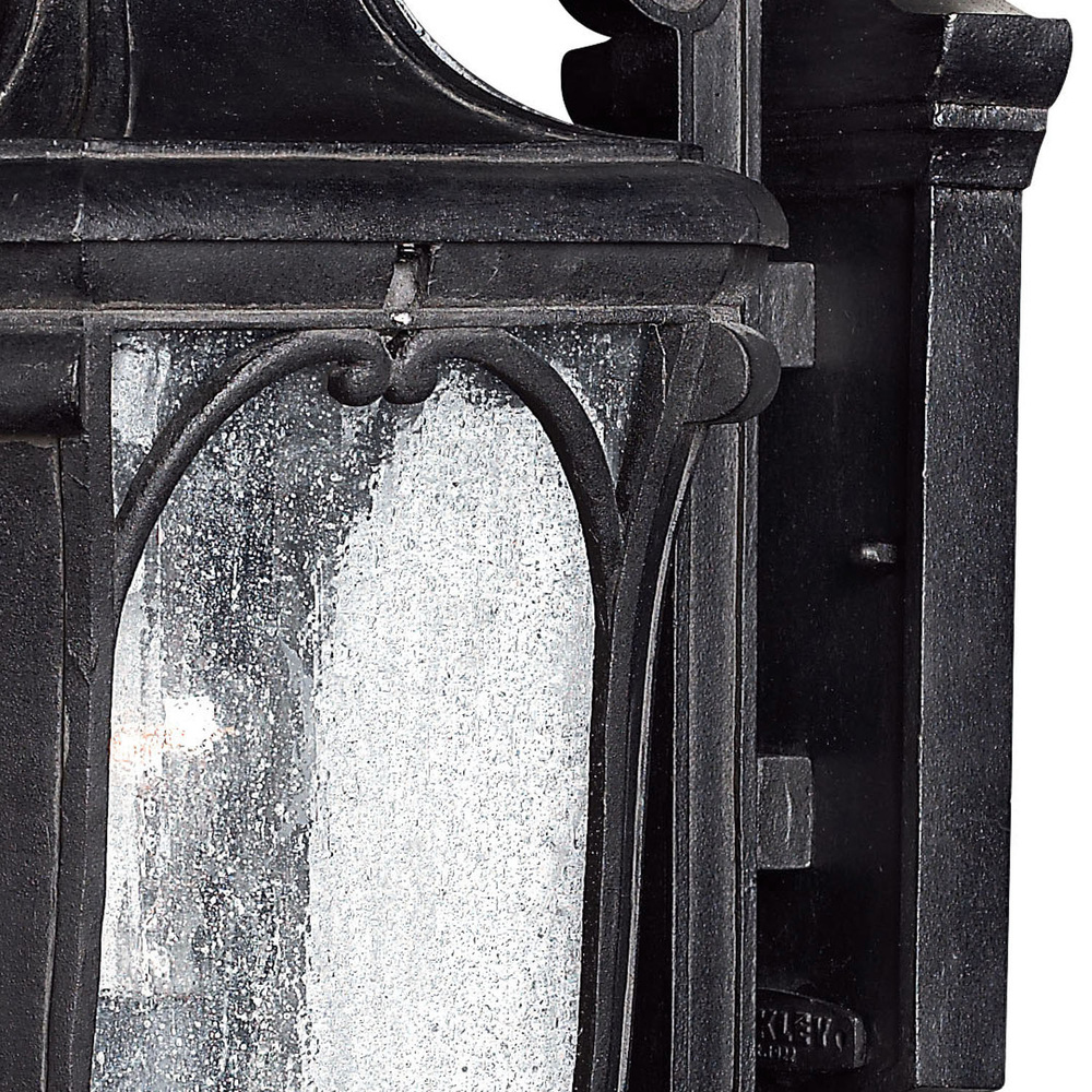 Trafalgar’s grand design in sturdy cast aluminum adds historical flair with delicate scroll arch detail, authentic distressed finish and clear seedy glass.