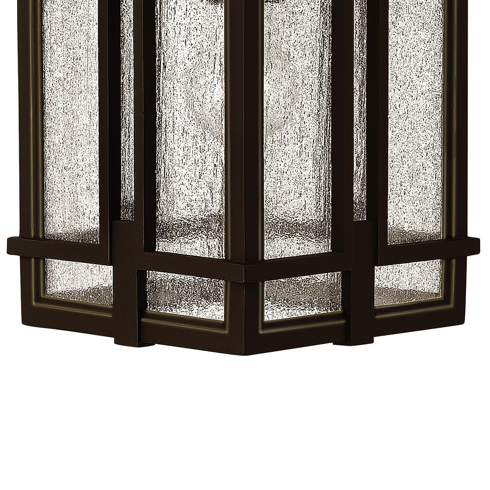 Tucker is study in symmetry with clean geometric lines and proportions reinforced throughout its cast aluminum construction. The sturdy Museum Black or Oil Rubbed Bronze finish and clear seedy glass inspire a rustic lodge aesthetic.