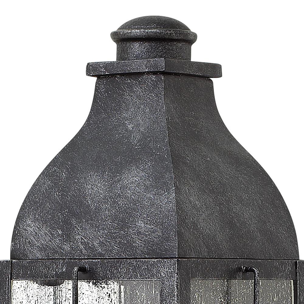 Bingham’s traditional style recalls a turn-of-the-century gas light reproduction. The vintage look is nautical in nature and recognizes Hinkley’s origins on the shores of Lake Erie. The aluminum construction features clear seedy glass and a Greystone or Sienna finish, while candelabra bulbing completes the authentic style.