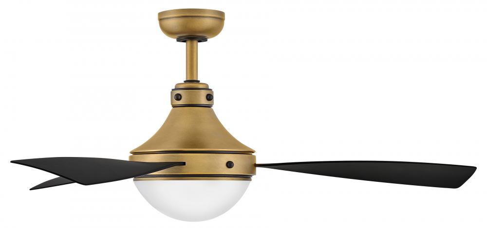 Sleek and eye-catching, Oliver's etched opal dome conceals integrated LEDs engineered to maximize light output. Slender blades are complemented by traditional styling and classic two-tone finishes. Wet-rated design is suitable for both interior and outdoor settings. Equipped with a 6-speed DC motor that is WiFi enabled and ready to connect right out of the box. Operated by the HIRO control or WiFi compatible with the Hinkley App.