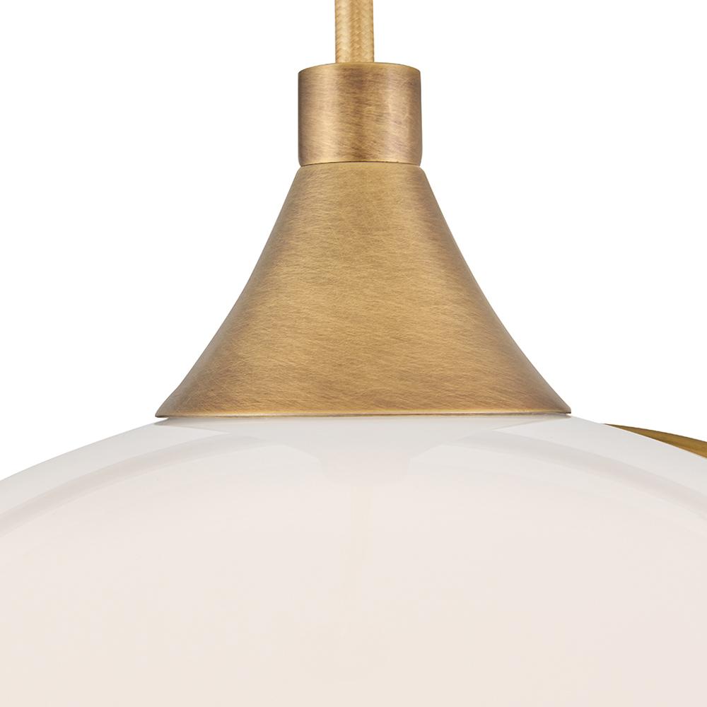 Mesmerizingly asymmetrical with a bohemian, mid-century modern flair, Skye showcases a stunning globe of clear or cased opal glass with an off-center opening. A slender ring and delicate details in a Heritage Brass or Black finish pull the look together, while an adjustable wire allows you to create the perfect look for your space.