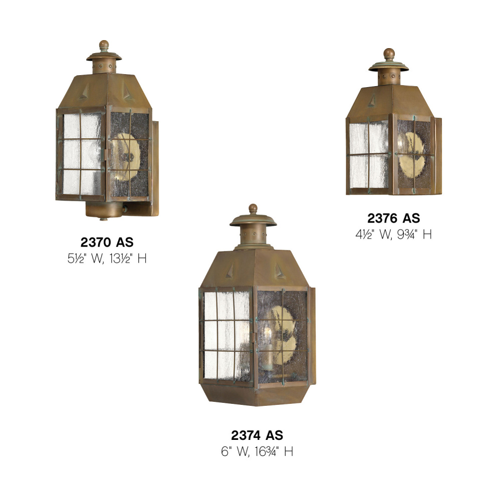 A Hinkley classic, Nantucket features a timeless New England design for the ultimate in vintage nautical chic. An Aged Brass finish, clear seedy glass panels and durable solid brass construction add to its retro appeal.